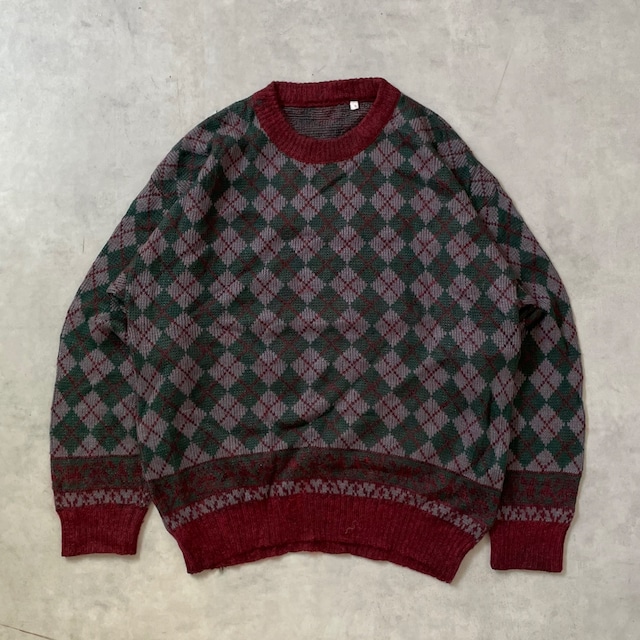 着丈58 身幅53 肩幅56 袖丈51 ボックスシルエットのメランジニットです。 アーガイルも相待ってて良い感じです 丈感も流行りの感じでいいですね