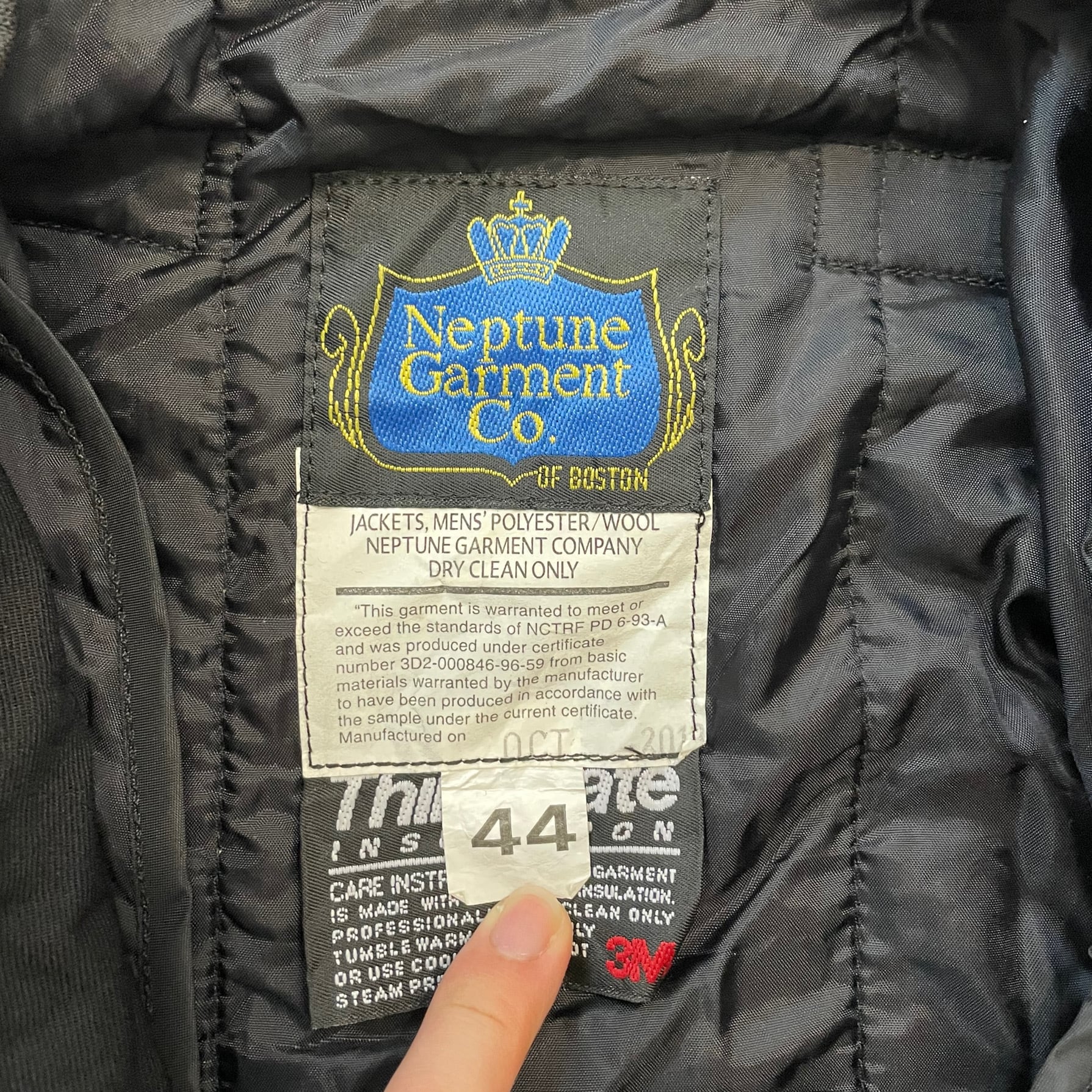 米軍実物放出品 NEPTUNE GARMENT CO. ボンバージャケット 44 / Thinsulateライナー付き