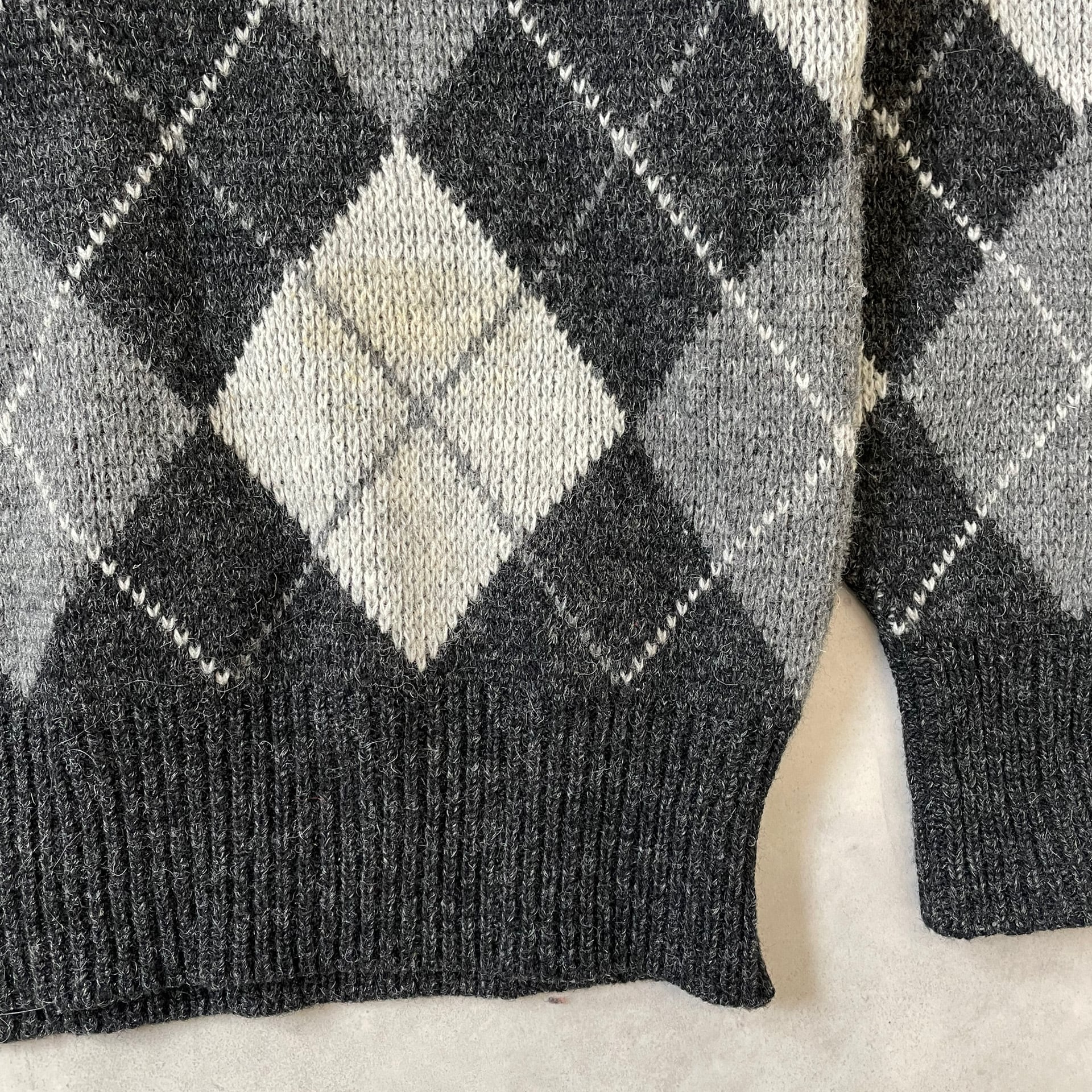 やっぱりニットの柄で持っておきたいのはアーガイルですよね。アーガイルはインナーで着てもいいし、一枚できてもいいし最高ですね